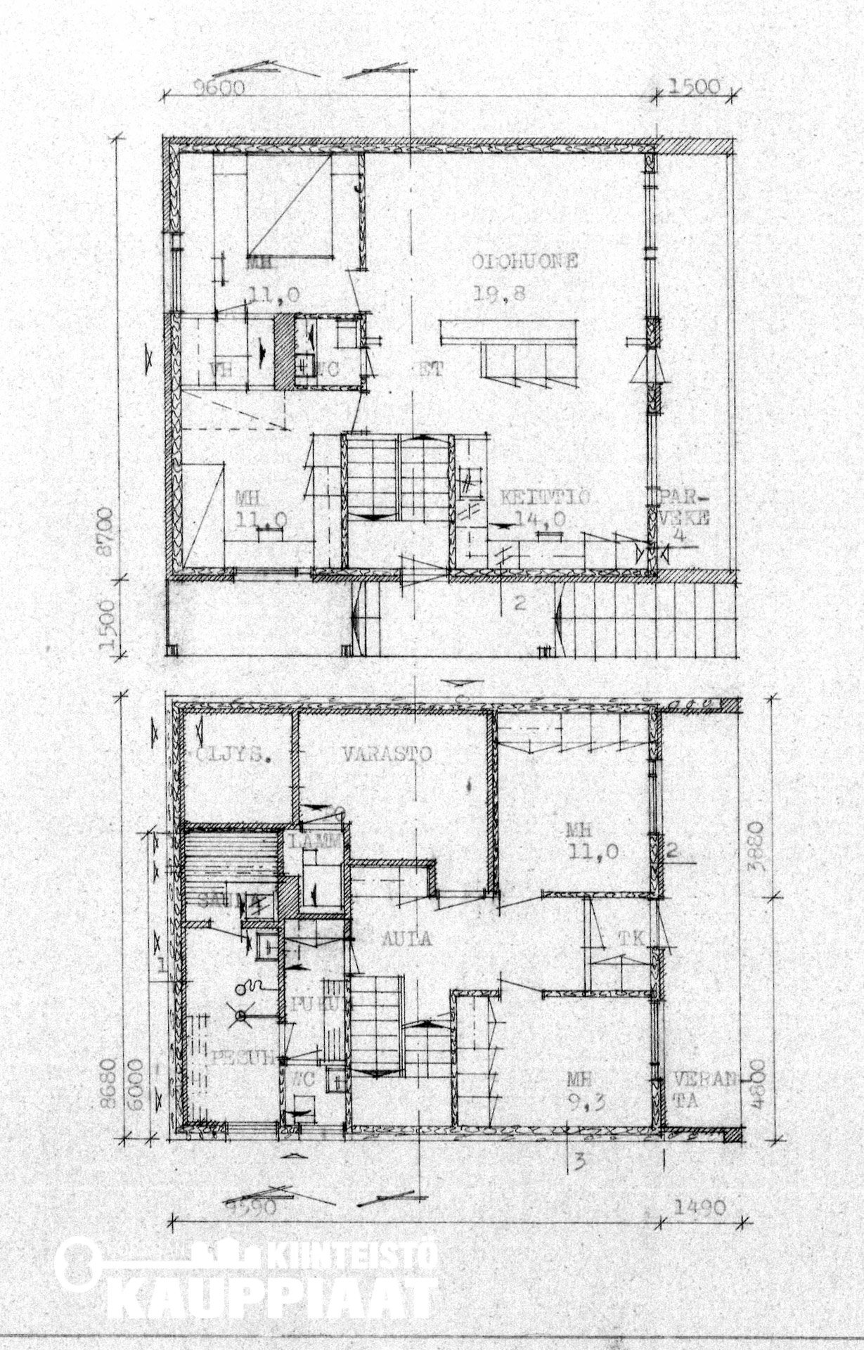 - 4h, k , wc, kph, sauna, varasto ja pannuhuone.